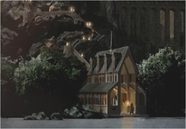 Das Torhaus ( Engl. Gatehouse ) einer der Haupteingänge zum Hogwartgelände. Es verbindet den Steinkreis mit der Hängebrücke, an der Vorderseite befindet sich eine Fackelhalterung.[7]