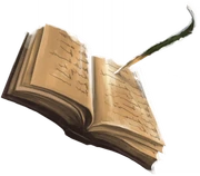 - ↑ 2,0 2,1 Wizarding World - Geschrieben von J.K. Rowling: "Die Feder der Akzeptanz und Das Buch der Zulassung" - Ursprünglich auf Pottermore veröffentlicht