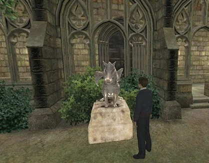 - In der Videospiel-Adaption von Harry Potter und der Halbblutprinz wurde die Steinstatue, die im zweiten Stock des Eingangs zum Schulleiterbüro stand, in den Viaduktvorhof verlegt.