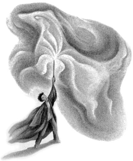 "Eran menos consistentes que los seres vivos, pero más que los fantasmas; avanzaban hacia él, y en todos los rostros había una afectuosa sonrisa."