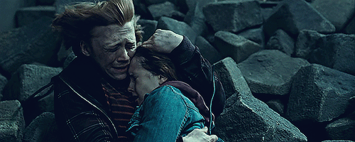 Ron protegiendo a Hermione hasta el final