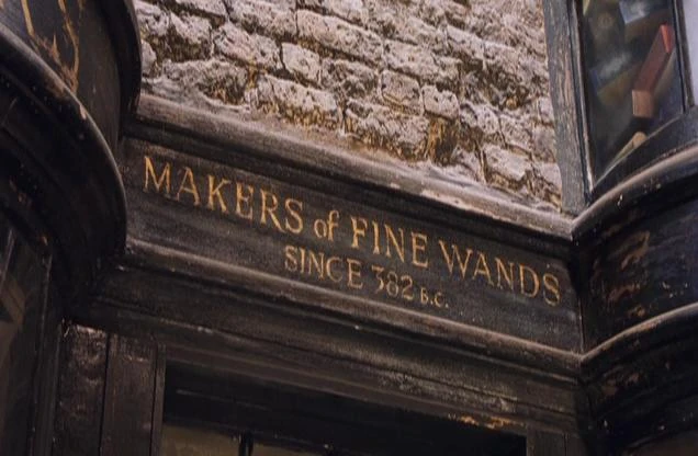El letrero afuera de la tienda de varitas de Ollivander.