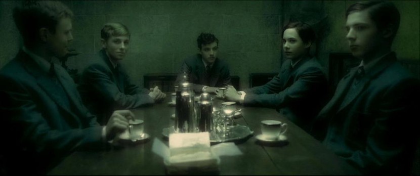 Avery en el Club de las Eminencias, junto con sus compañeros Tom Ryddle, Lestrange y otros