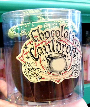 - En The Wizarding World of Harry Potter se venden calderos de chocolate. Son calderos de chocolate con leche huecos, con "espuma" de malvavisco verde.
