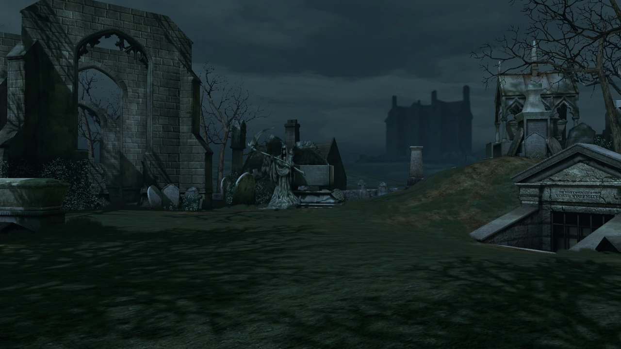 - «Se hallaban en el cementerio oscuro y descuidado de una pequeña iglesia, cuya silueta se podía ver tras un tejo grande que tenían a la derecha. A la izquierda se alzaba una colina. En la ladera de aquella colina se distinguía apenas la silueta de una casa antigua y magnífica.»