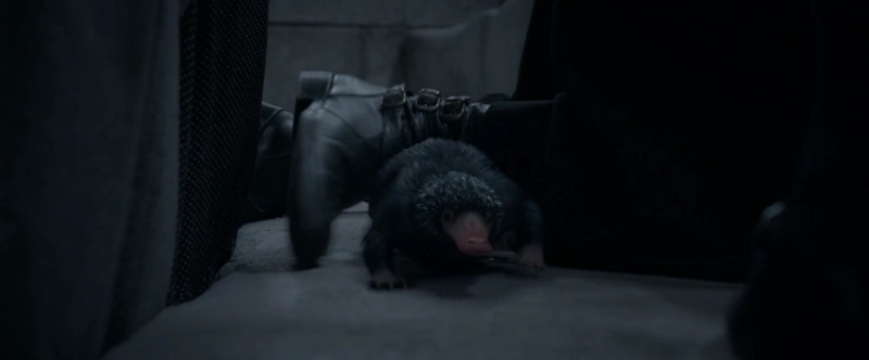Teddy saliendo de la bota de Grindelwald con el colgante.