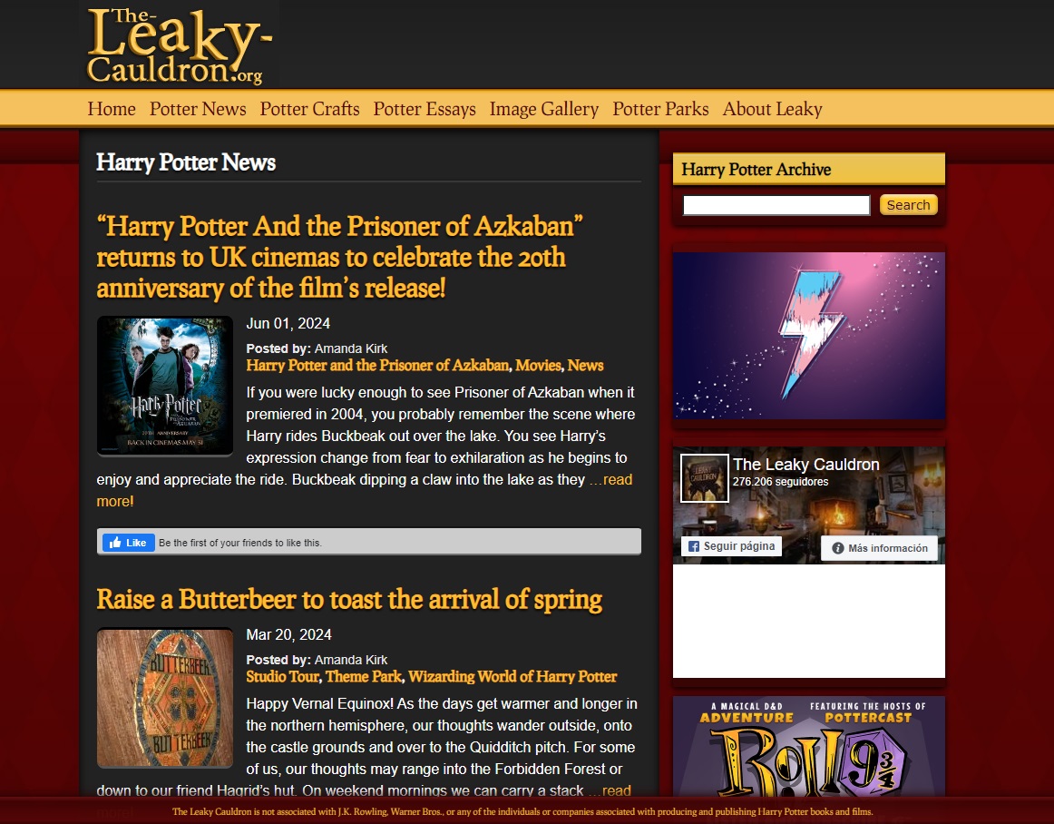 - ↑ El Caldero Chorreante - Sección: Sitios de los fans, JKRowling.com - Archivado en Web Archive
