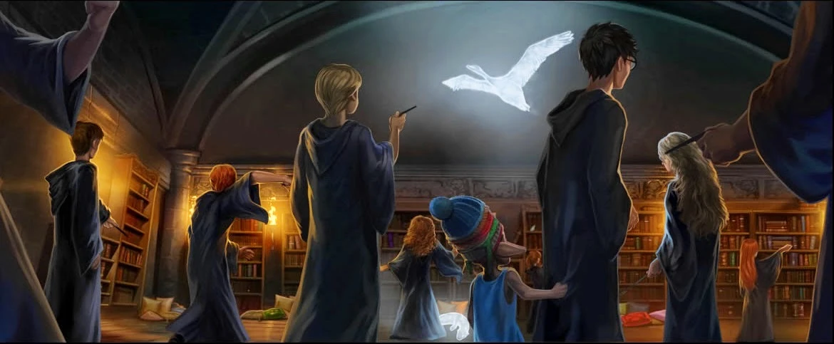 Harry Potter enseñando el encantamiento a los miembros del E.D..