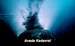 Voldemort usando la maldición Avada Kedavra durante la Batalla de Hogwarts.