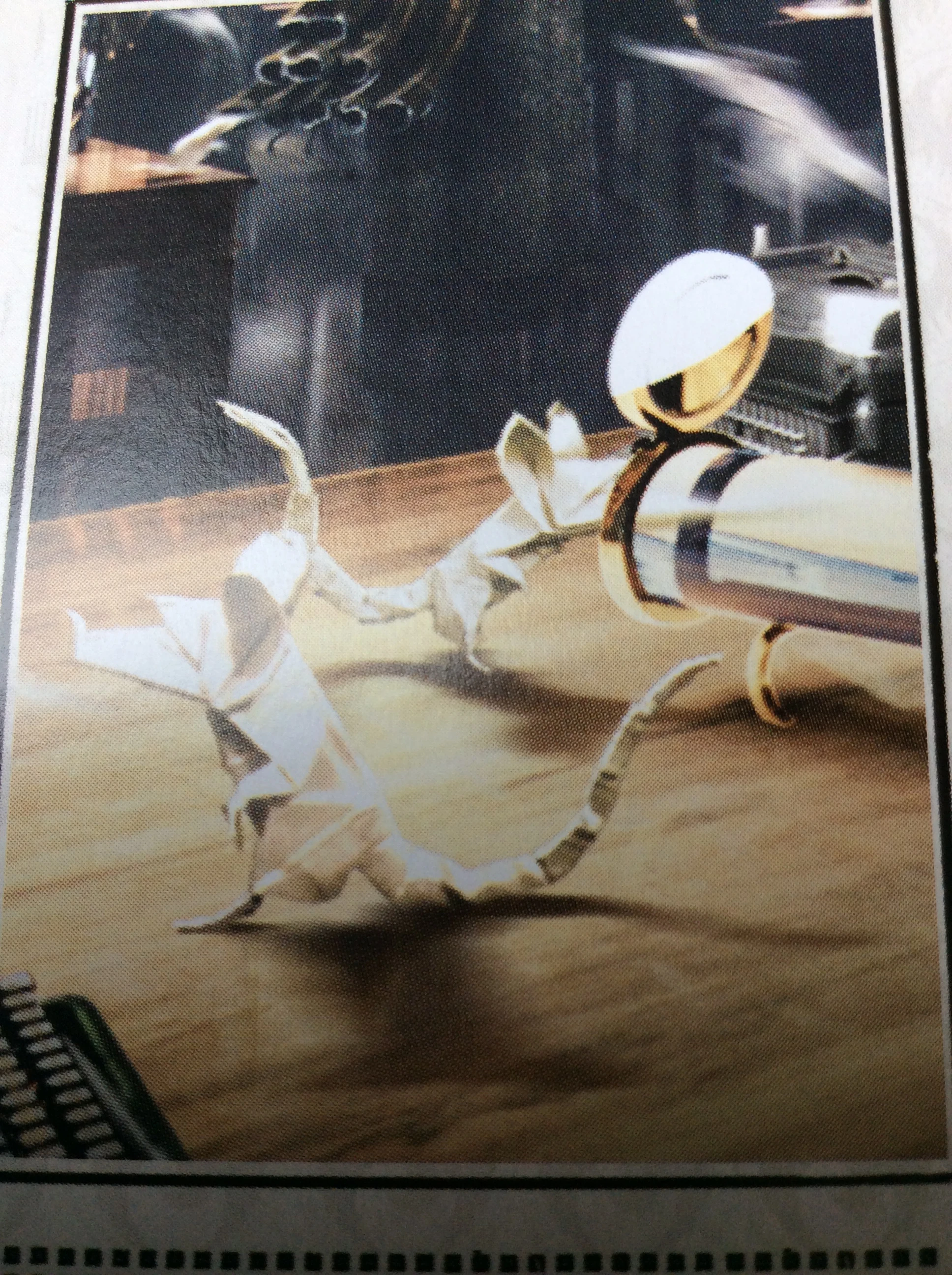 - Estos fueron diseñados como obras de arte planas por el equipo gráfico, luego trabajados por el departamento de utilería antes de que finalmente cobraran vida gracias al departamento de efectos visuales, con los memorandos volando hacia arriba antes de correr por las tuberías para entregarse, aunque en una toma, dos ratas se encuentran y comienzan a pelearse.[2]