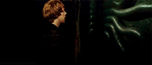 Ron logra abrir la Cámara de los Secretos imitando el pársel de Harry