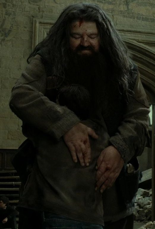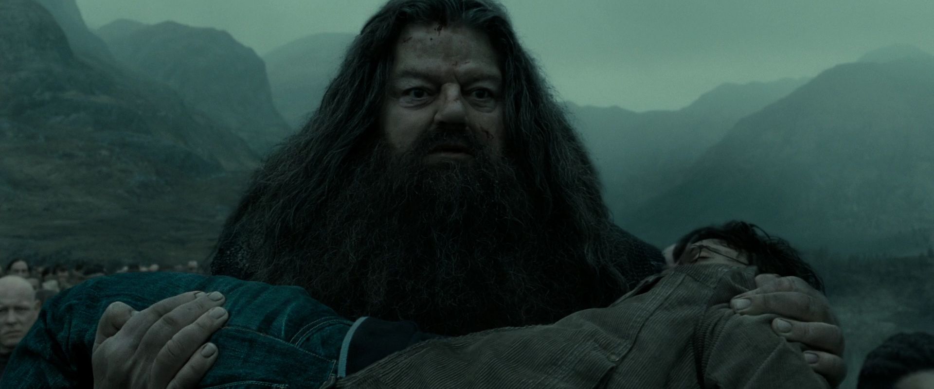 Hagrid cargando el aparente cuerpo muerto de Harry