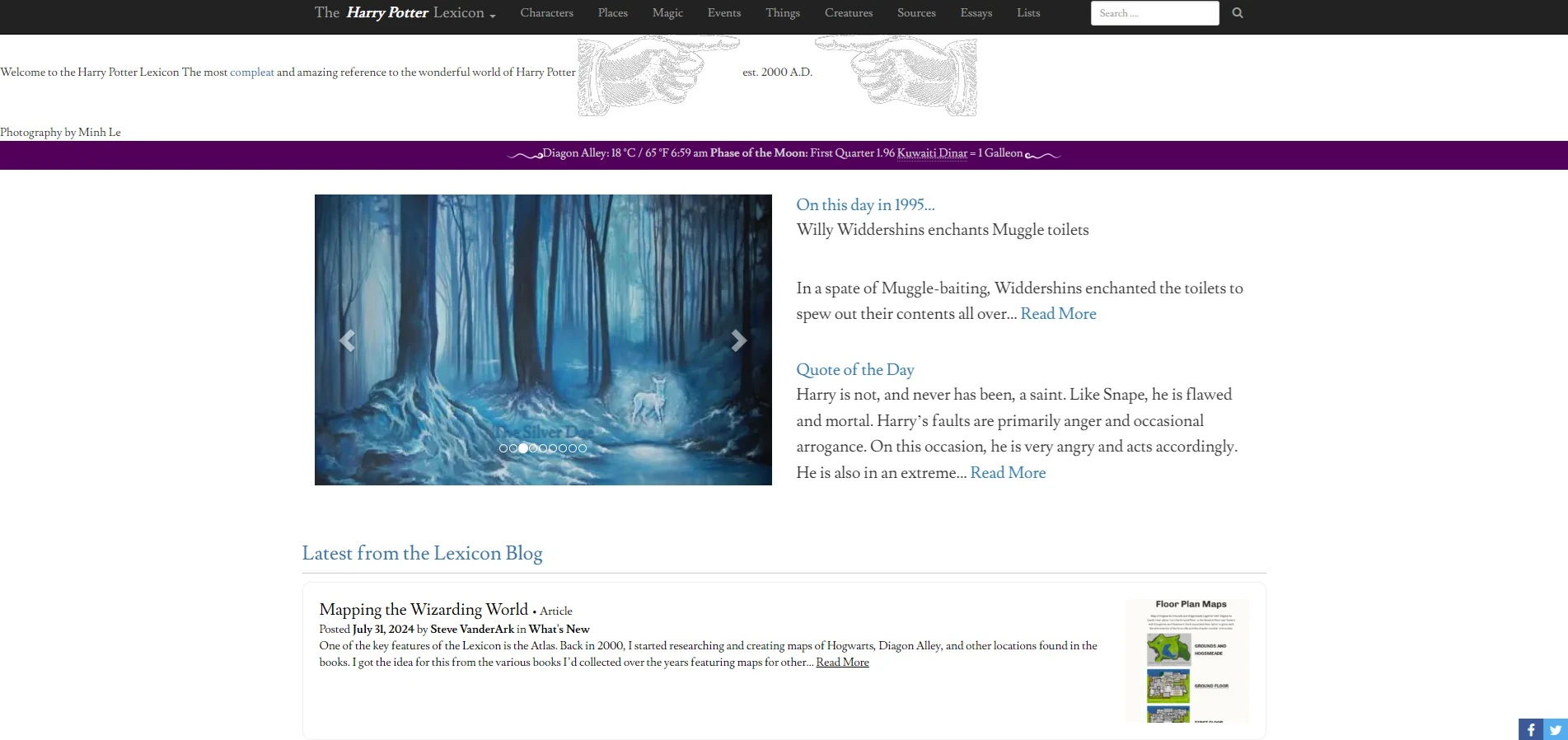- ↑ The Harry Potter Lexicon - Sección: Sitios de los fans, JKRowling.com - Archivado en WebArchive