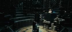 - «No era la misma habitación en la que [Harry] había sido interrogado por el uso incorrecto de la magia. Esta era mucho más pequeña, aunque el techo era tan alto que daba la sensación claustrofóbica de estar atrapado en el fondo de un pozo profundo»