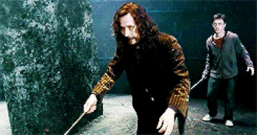 Sirius sort of cowers and Lupin tried to talk him down, but is obviously fearful.