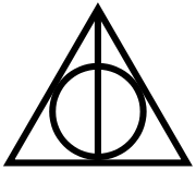 Kuoleman varjeluksien symboli. Pystyviiva kuvaa seljasauvaa, kolmio näkymättömyysviittaa ja ympyrä elpymyskiveä.