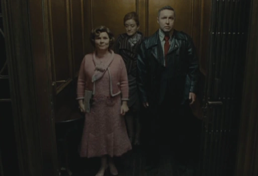 - Le film met en scène une course-poursuite dans l'atrium du trio par Yaxley et des groupes de gardes.