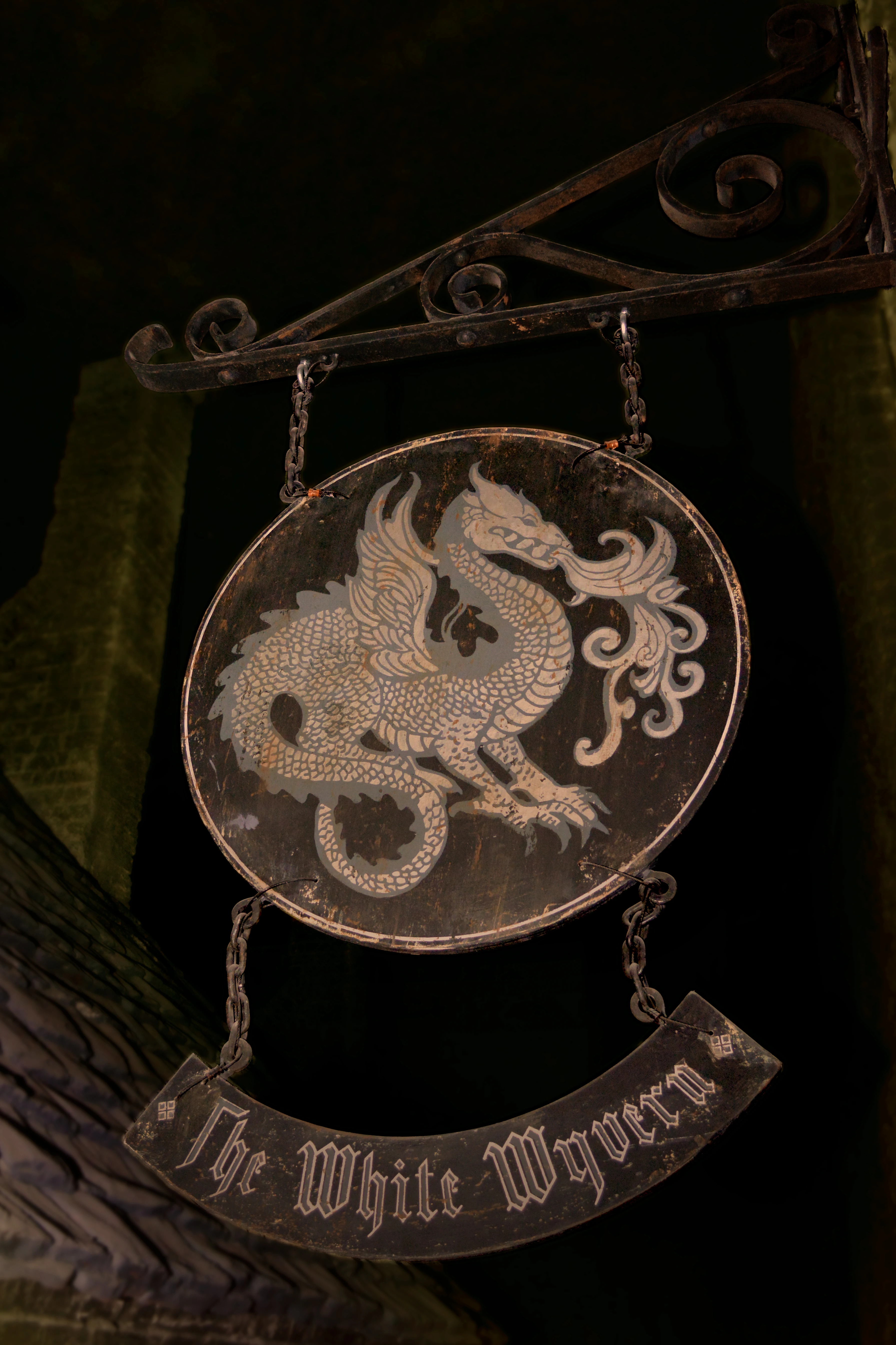 Selon The Wizarding World of Harry Potter, la Vouivre Blanche est située dans l'Allée des Embrumes à Londres, à proximité de Markus Scarrs.[1]