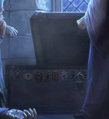 - 2e serrure : des Scrutoscopes cassés, des feuilles de parchemin, des plumes et une cape d'invisibilité.