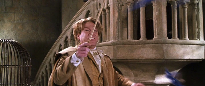 Après avoir libéré les lutins de Cornouailles, Gilderoy Lockhart n'a pas le temps de terminer de lancer sa formule qu'un lutin de Cornouailles lui prend sa baguette des mains.[2]