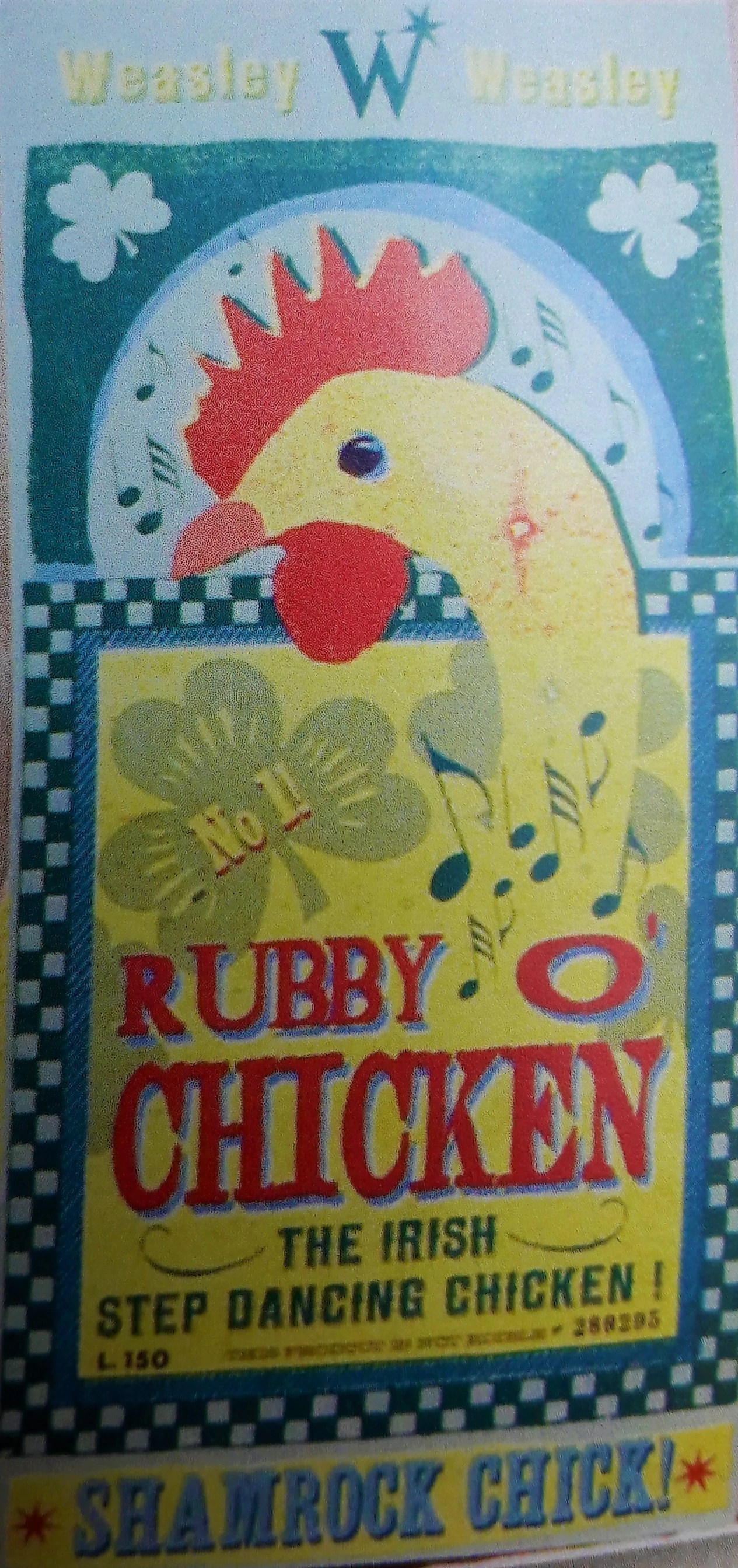 D'après The Making of Harry Potter, il s'agit d'un poulet en caoutchouc enchanté pour être capable de danser une danse irlandaise. Il est indiqué sur l'emballage que ce produit n'est pas comestible.[2]