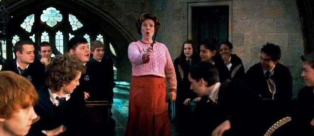 Lors de l'année 1995-1996, dans le film Harry Potter et l'Ordre du Phénix, Dolores Ombrage enseigne la défense contre les forces du Mal. Elle ne fait que des cours théoriques sans aucune pratique des sortilèges.[10]