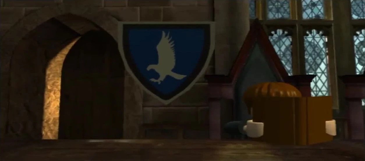 Le blason de Serdaigle et son directeur à l'époque de Harry, Filius Flitwick, dans le jeu LEGO.
