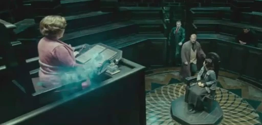 Hermione, Harry e Ron, che avendo bevuto la pozione polisucco, hanno assunto le sembianze di tre impiegati del ministero, schiantano la Umbridge e permettono la fuga a Mary e a suo marito Reginald.