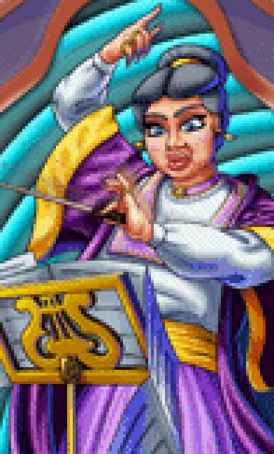 ミュージドラ・バークウィズ(1520年~1666年)は魔女で作曲家である。彼女の未完成の作品、魔法組曲は、破裂音を出すチューバが特徴である。1902年にアッカーリー・タウン・ホールの屋根を吹き飛ばして以来、演奏が禁止となった。この出来事により、銅の蛙チョコレートのカードに収録された。