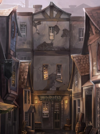 De winkel werd omschreven als klein en armzalig met afpellende gouden letters boven de deur van de winkel die Olivander: Maker van Exclusieve Toverstokken sedert 382 voor Christus weergeven.