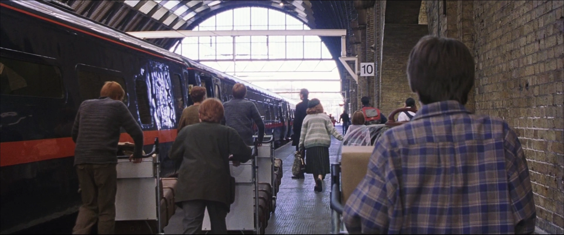 - In de boeken wordt beschreven dat de barrière die naar het perron leidt, van metaal is gemaakt. In de films is de barrière echter een bakstenen muur.