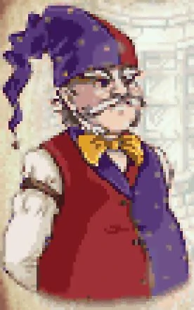 Eieren av Tummel & Trøyte var en kraftig mann med hvitt skjegg og bart. Han var ikledd en rød og lilla vest, en hatt i samme farge og en gul sløyfe. I 1992 solgte han Harry Potter en pakke med Stinkpiller.