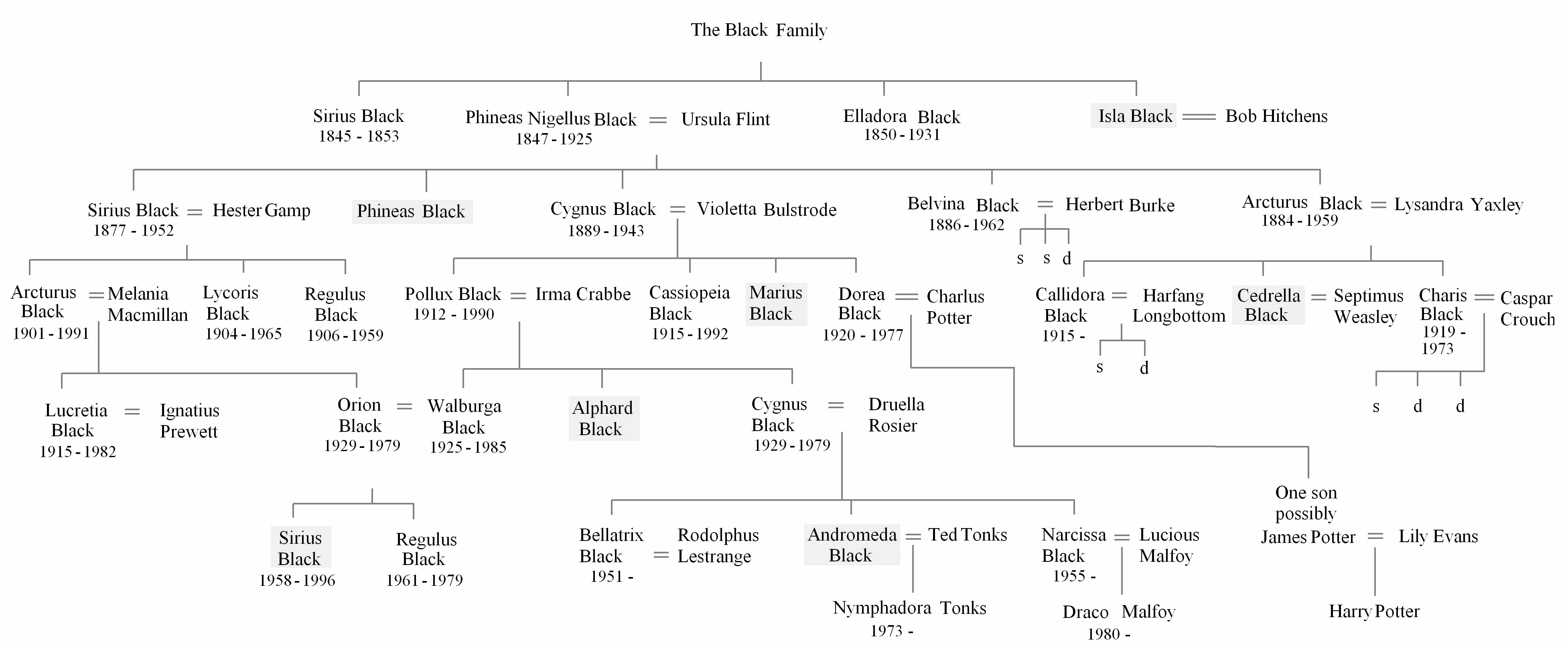 Andre igjen giftet seg med søskenbarna sine, Walburga og Orion Svaart er et typisk eksempel på nettopp det, ettersom de var tremenninger. Denne praktiseringen fant sted i flere århundre, og var altså en form for innavl, noe som egentlig hadde skapt ganske store problemer innad i familien.