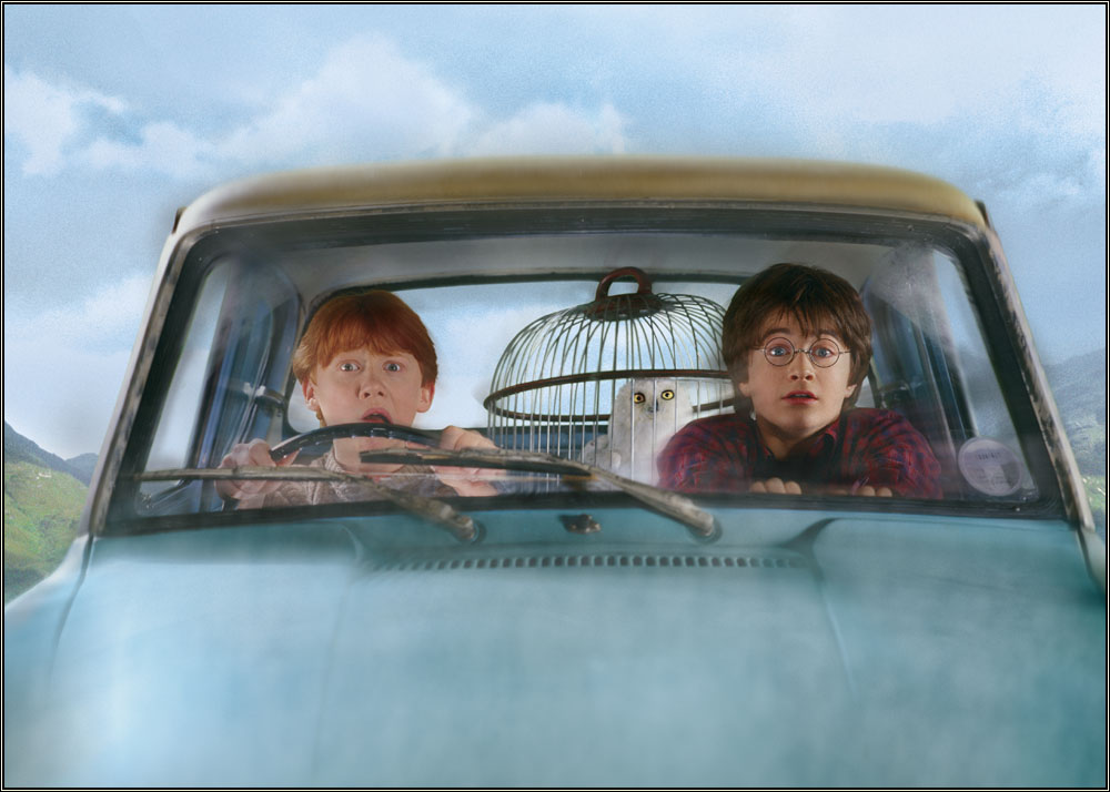 Ronny og Harry i den flygende Ford Angliaen