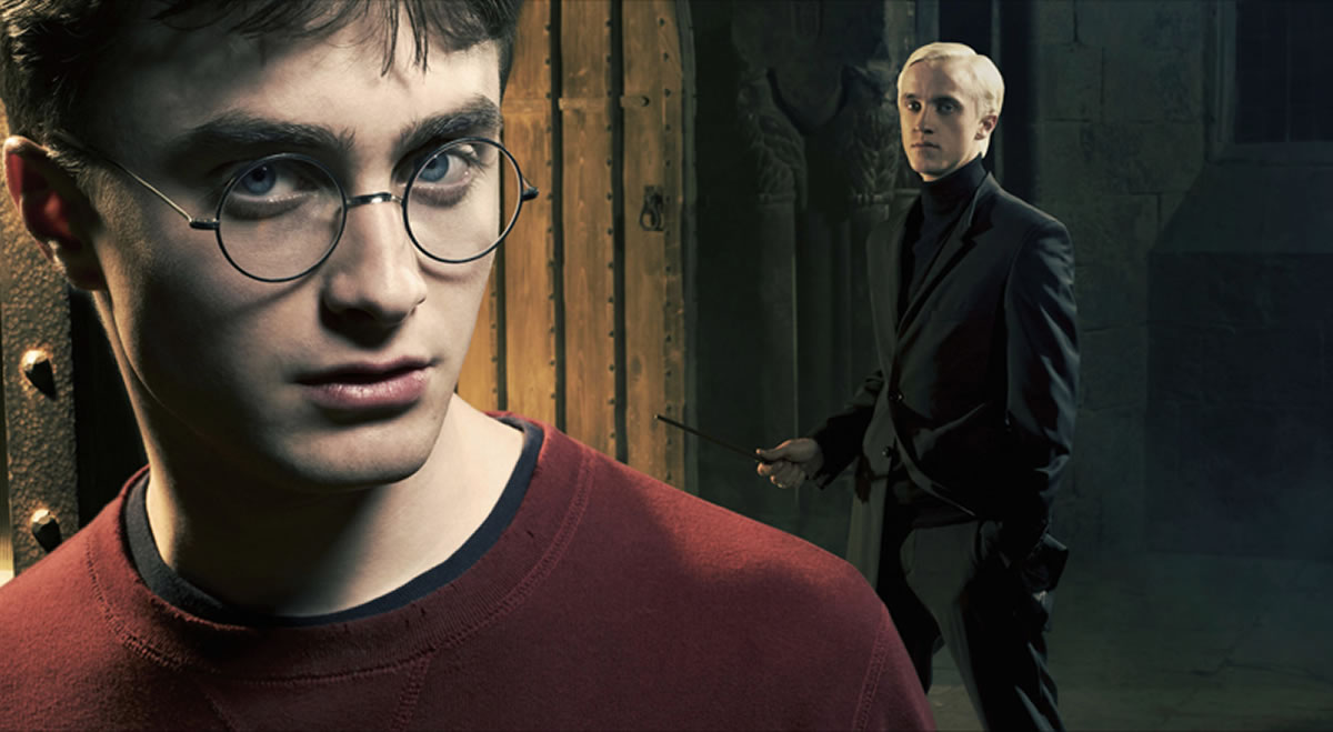 W tym czasie Harry podejrzewa, że Ślizgon coś knuje, zaczyna mieć na jego punkcie obsesję i stale go śledzi. Gryfon podejrzewa, że Malfoy stał się śmierciożercą. Podczas wizyty w Hogsmeade, Draco podrzuca przeklęty naszyjnik Katie Bell, który pierwotnie miał trafić do Dumbledore'a. Po tym incydencie, Harry idzie za Malfoyem do łazienki na szóstym piętrze, gdzie rozgrywa się między nimi walka, wskutek której Draco zostaje trafiony zaklęciem Sectumsempra. Chłopaka leczy Severus Snape, który w tym samym roku składał wieczystą przysięgę chronienia go.