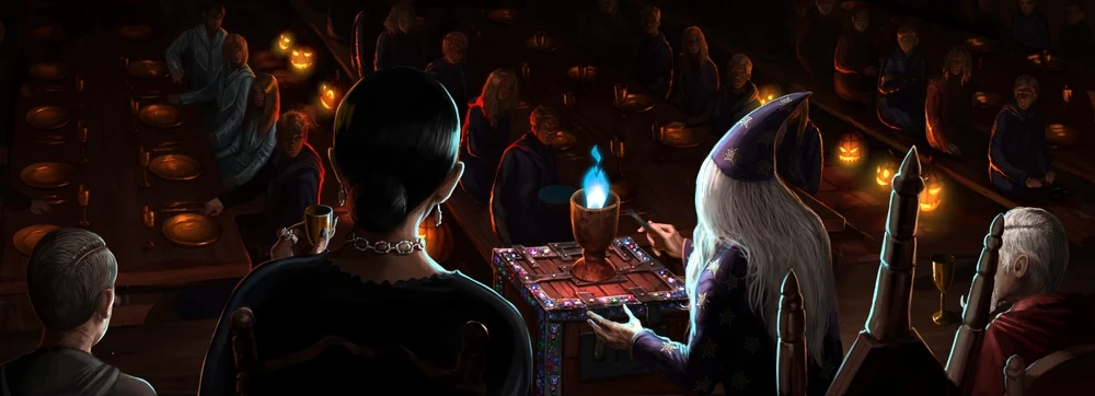 31 października 1994 roku w czterech rogach Wielkiej Sali ustawiono setki wydrążonych dyń z postrzępionymi zębami, oświetlającymi Wielką Salą. Podczas wyboru reprezentantów Turnieju Trójmagicznego Albus Dumbledore wyjął różdżkę i machnął nią szeroko, tak aby zgasły wszystkie świece, z wyjątkiem tych znajdujących się w wydrążonych dyniach[10].