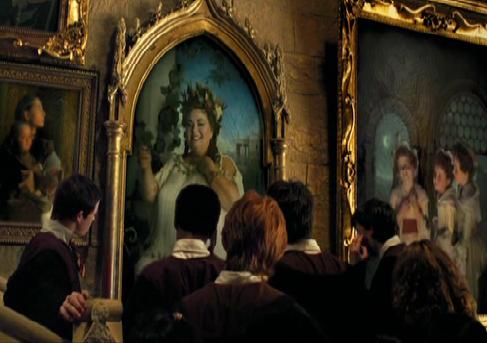 W nocy z 25 na 26 grudnia Grubą Damę wystraszył Harry, który przeszedł przez dziurę za obrazem, na którym się znajdowała, okryty peleryną–niewidką, którą otrzymał w prezencie na Boże Narodzenie[3].
