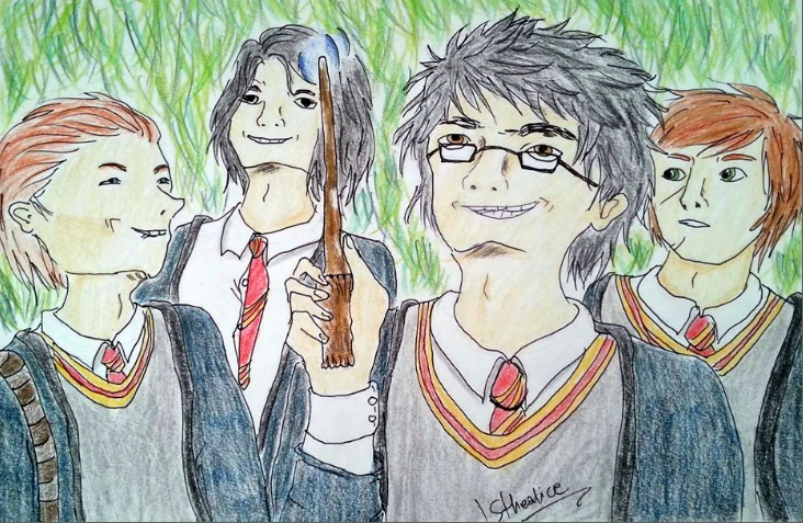 Gdy Slughorn podszedł do stolika, na którym trzymał swoja ulubiona Ognistą Whisky i szklanki, Minerwa zobaczyła stojące na kominku fotografie. Przedstawiały kilku uczniów szkoły, z kilku ostatnich roczników. Siedzieli w szkolnych ławach lub spacerowali po korytarzach, żadne ze zdjęć nie było pozowane.