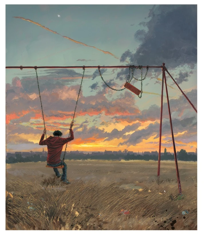 - W filmie huśtawki znajdowały się na niewielkim ogrodzonym placu zabaw, natomiast w książce wspomniane było tylko, że huśtawki znajdują się w parku, sugerując, że mogły znajdować się na otwartej przestrzeni i nie było wokół nich karuzeli czy ślizgawek.