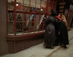 W sierpniu 1992 roku, Ron Weasley zapatrzył się na witrynę sklepu, w której były szaty jego ulubionej drużyny quidditcha, Armat z Chudley i dopiero Hermiona go od niej odciągnęła, ponieważ musieli się zaopatrzyć w różne przybory szkolne, pióra i pergaminy[2]. Był to ulubiony sklep Harry'ego Pottera na ulicy Pokątnej. Latem 1993 roku, Harry Potter często go odwiedzał, gdy przez trzy tygodnie mieszkał w Dziurawym Kotle. Uczestniczył w prezentacji nowej sportowej miotły wprowadzonej tego lata na rynek sprzedaży, Błyskawicy, która znalazła się w ofercie sklepu. Miotła wzbudzała ogromne zainteresowanie i Harry także chciał ją mieć, chociaż uświadomił sobie, że był już w posiadaniu Nimbusa 2000, która uchodziła za bardzo dobrą miotłę[3]. Miotła posiadała "cenę na żądanie" i nie była określona, co nie spodobało się chłopcu.