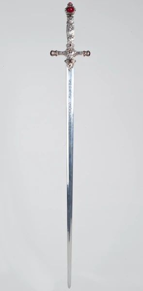 Miecz został wykuty ze srebra goblinów, posiadał klingę z wygrawerowanym na niej imieniem i nazwiskiem jej właściciela - Godryka Gryffindora: GODRIC GRYFFINDOR. Bogato zdobiona rękojeść była wysadzana rubinami, z których najbardziej wyróżniał się czerwony rubin umieszczony w głowicy i 3 pozostałe: 1 umieszczony na czubku głowicy rękojeści i 2 na czubkach jelca.