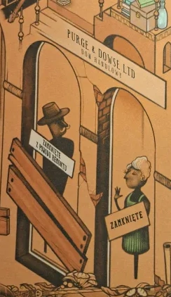 Był to duży, staroświecki dom handlowy zbudowany z czerwonej cegły. W oknach wystawowych było kilka podniszczonych manekinów w przekrzywionych perukach, prezentujących modę sprzed 10 lat. Na wszystkich drzwiach widniał napis: „Zamknięte z powodu remontu”. Znajduje się tam magiczne przejście do Szpitala Świętego Munga.