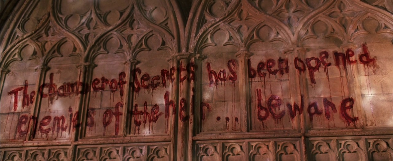 - No Dia das Bruxas, a gata de Argo Filch, Madame Nor-r-ra, é petrificada, enquanto uma pichação na parede declara que a Câmara Secreta foi reaberta.