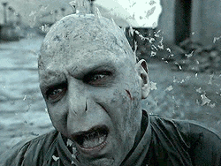Voldemort se desintegrando às cinzas em Harry Potter e as Relíquias da Morte: Parte 2