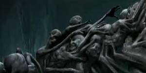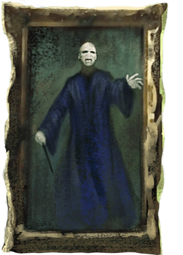 Voldemort vestindo um manto com capuz durante a Primeira Guerra, como um possível meio de invocar o medo.
