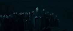 Убив Снегга и решив, что теперь Бузинная палочка слушается только его, Волан-де-Морт решает перегруппировать войска, а то и закончить битву, не сражаясь. Для начала он отзывает пожирателей, великанов и акромантулов, несмотря на свой перевес в бою.