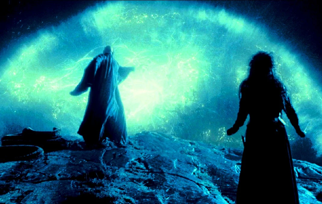 Битва за Хогвартс: разрушение Волдемортом защитного купола Хогвартса с помощью Бузинной палочки