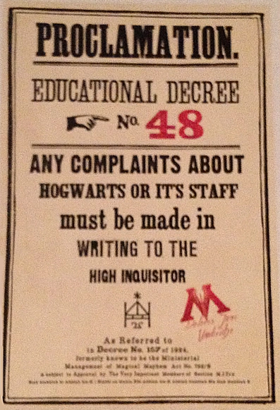 Декрет об образовании № 48 (англ. Educational Decree Number Forty-Eight) был разработан Долорес Амбридж, Генеральным инспектором Хогвартса. Этот декрет обязал всех студентов, желающих пожаловаться на школу или персонал, предоставлять жалобы Генеральному инспектору в письменном виде[1].