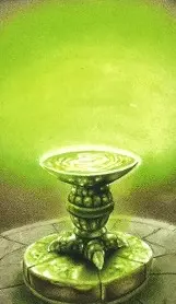 Спустя восемнадцать лет, проведя собственное расследование, Альбус Дамблдор выходит на след крестража-медальона и вместе с Гарри Поттером отправляется в ту самую пещеру, чтобы уничтожить крестраж. Подойдя к каменной чаше, Дамблдор понимает, что эта светящаяся изумрудная жидкость и есть их главное препятствие на пути к крестражу, хотя он и сам точно не знает, что это за зелье. Дамблдор понимает, что для того, чтобы заполучить крестраж, зелье придётся выпить, и наколдовывает из воздуха хрустальный кубок. Выпив подряд три полных кубка зелья, Дамблдор начинает чувствовать себя плохо. Он наваливается на чашу и тяжело дышит. Зелье словно приводит его в состояние глубокого сна с ужасными сновидениями.[1] Оно заставляет Дамблдора умолять Гарри пощадить его, но Гарри, давший профессору слово выполнять все его приказы, испытывая от совершаемого глубочайшее отвращение, продолжает силой поить его. Директор стремительно слабеет под действием зелья и словно подвергается нападению невидимых мучителей.[1] Возникает ощущение, что изумрудное зелье воскрешает в голове пьющего самые страшные его воспоминания, которые словно причиняют нестерпимую физическую боль.