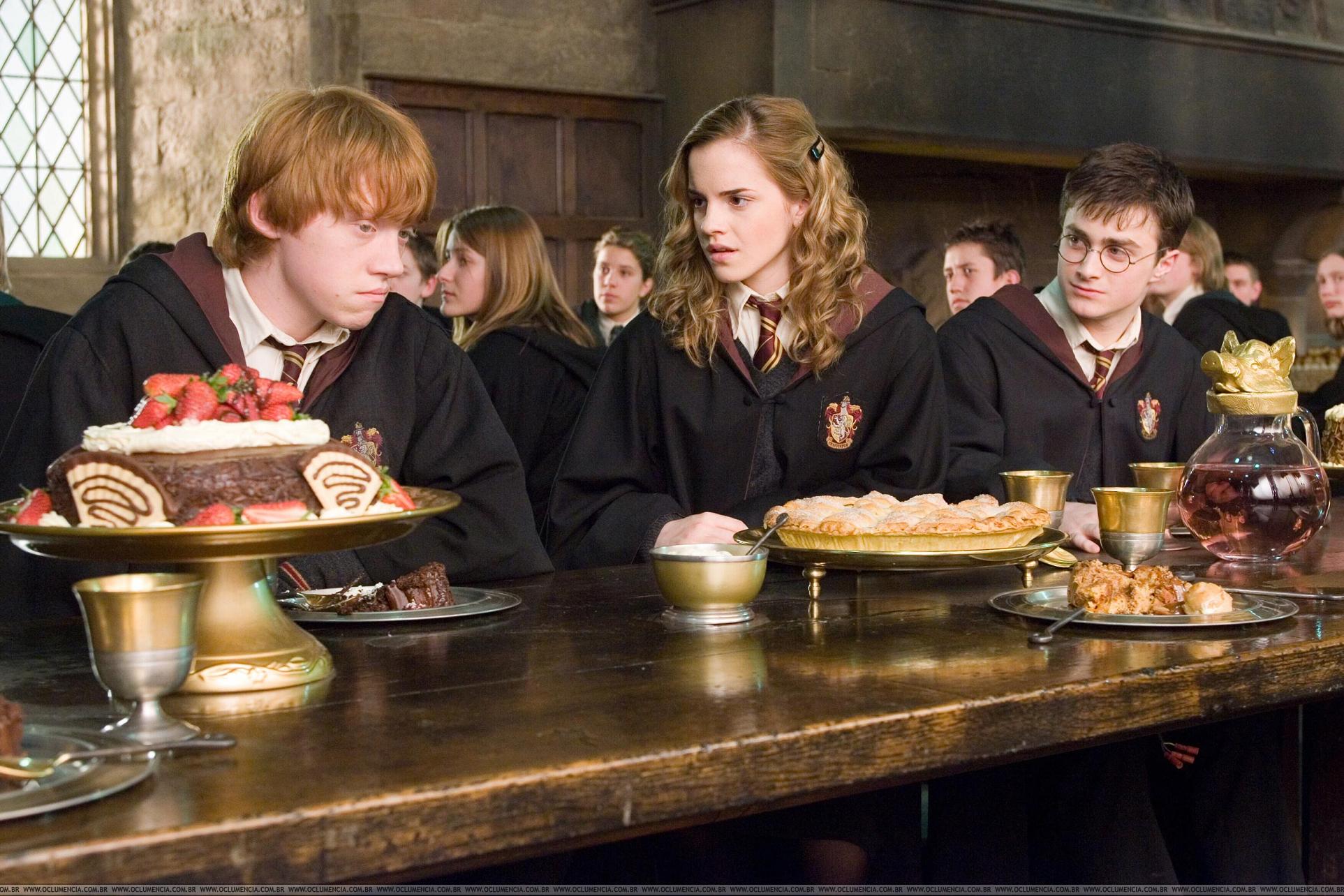 - Во время поездки на Хогвартс-экспрессе Рон упомянул шоколадные шарики, наполненные клубничным муссом, продающиеся в кондитерской «Сладкое королевство».
